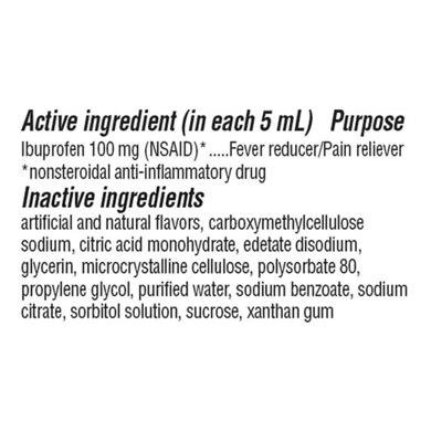 Children’s Advil Suspension Ibuprofen is a dye-free, blue raspberry liquid medicine that reduces fever and relieves aches and pains due to colds, flu, headaches, toothaches, and teething. With just one dose, it works for up to 8 hours and comes with an easy-to-use dosing syringe. Suitable for children 6–23 months, this pediatrician-recommended ibuprofen (NSAID) is safe, non-staining, and alcohol-free. Always follow labeled directions for proper dosing based on age or weight and never exceed 4 doses in 24 hours.